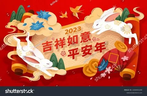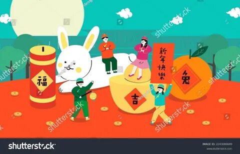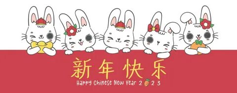 group of five happy Rabbit bunnies boy and girl Happy Chinese New Year banner, d