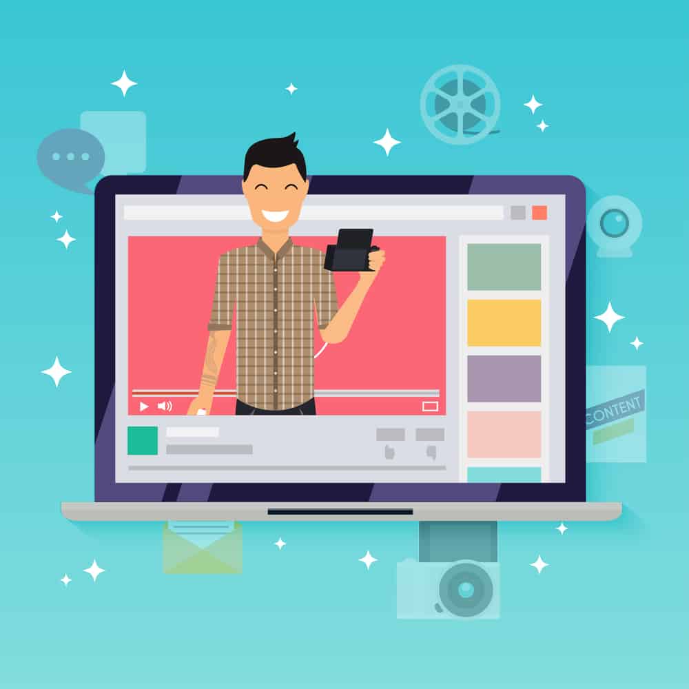 Blogger Man Records Video Blog Vector. Vlog Concept. Online Internet Streaming V