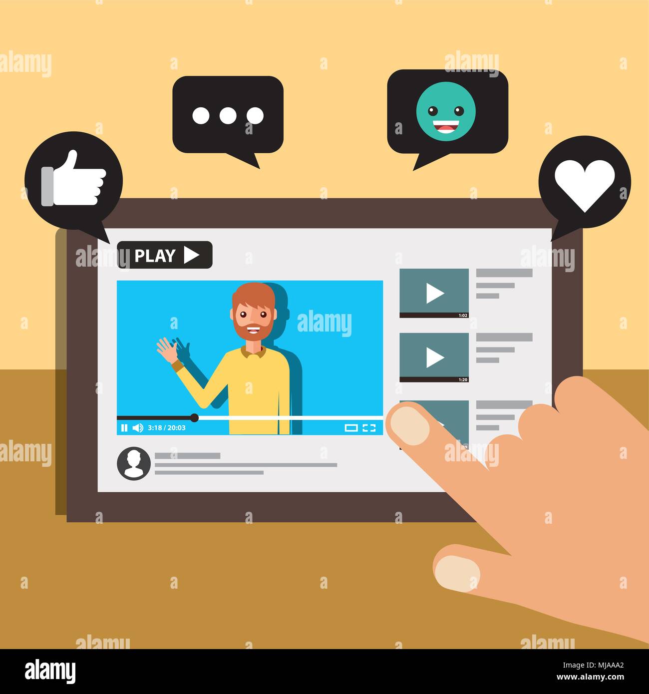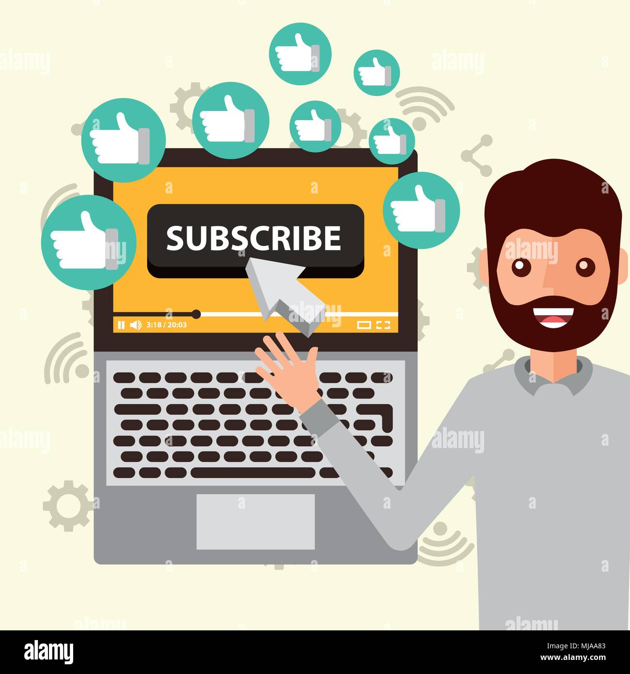 blogger man pointing laptop subscribe likes Stock Vector Image & Art - Alamy