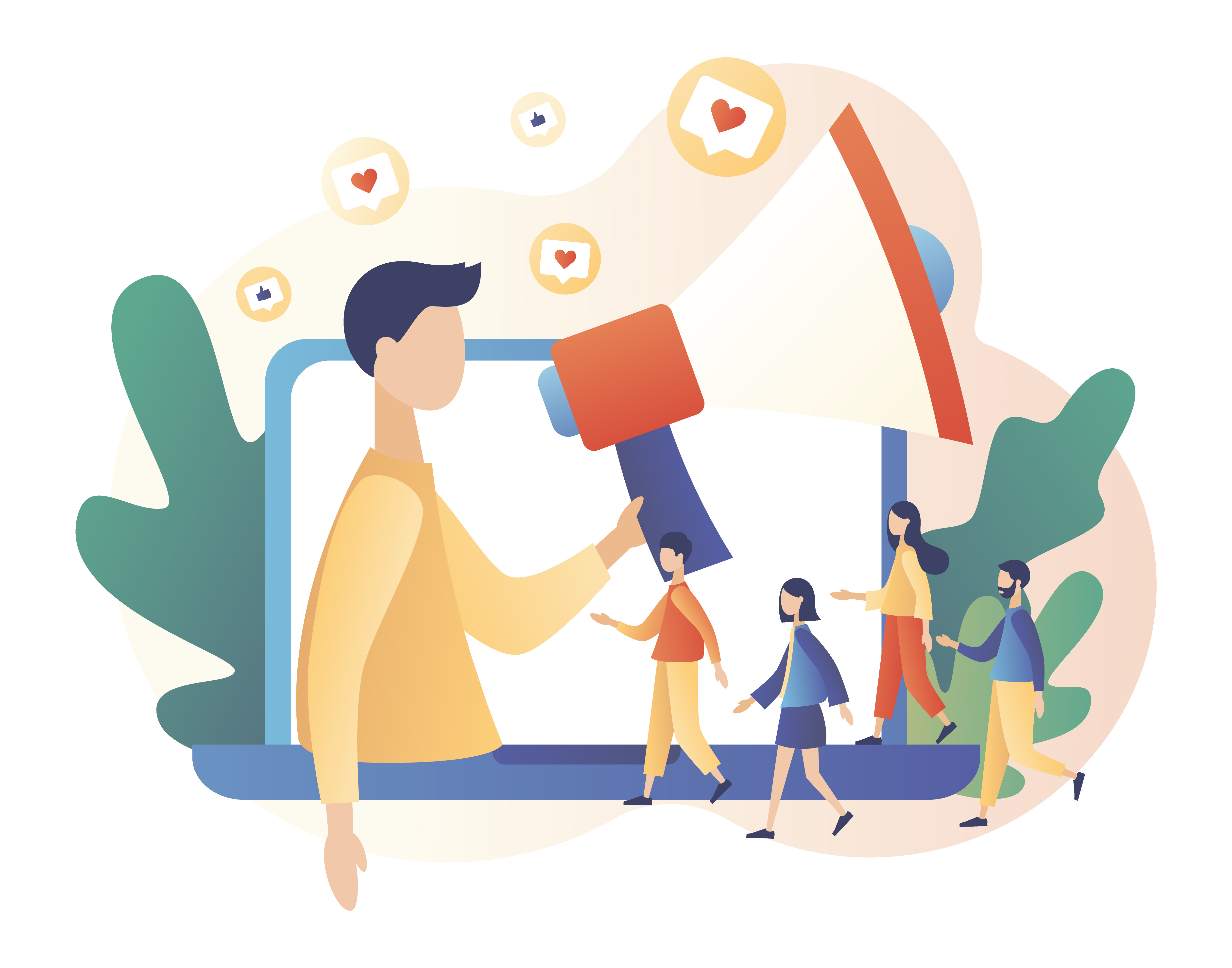 Top Key Opinion Leader, woman use Social media influencer. Blogger man with mega