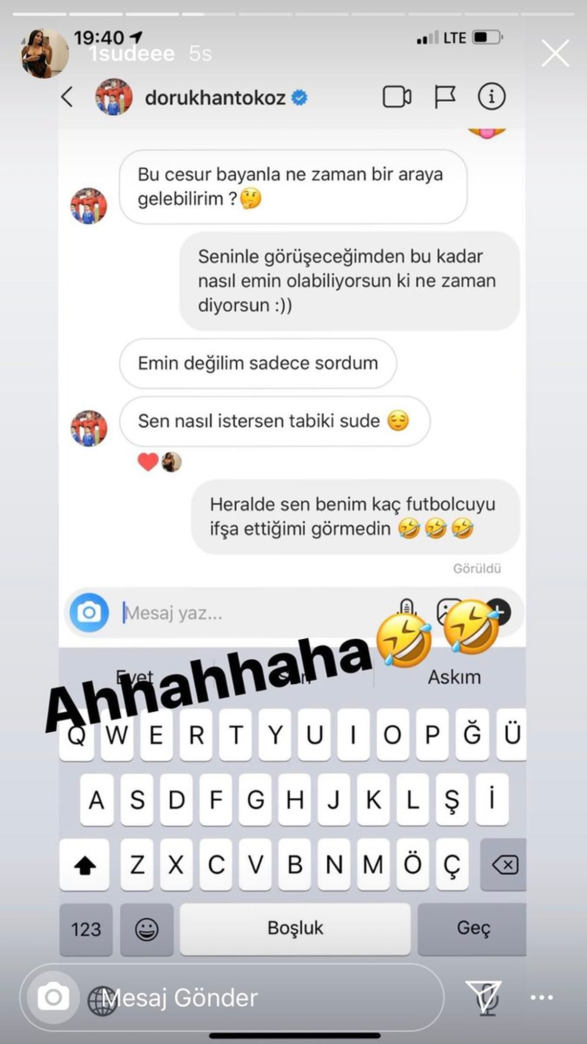 Beşiktaşlı Futbolcu Dorukhan Toköz’ün, DM'den Yürüdüğü Enise Sude İsimli Kadın T