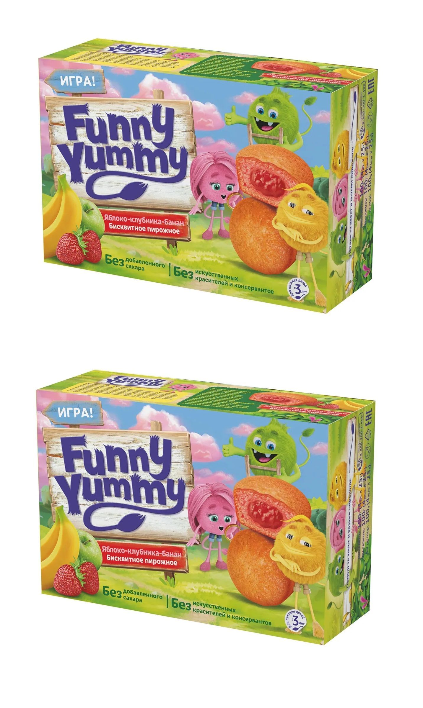 Бисквит Funny Yummy яблоко-клубника-банан 100 г 2 шт купить на OZON по низкой це